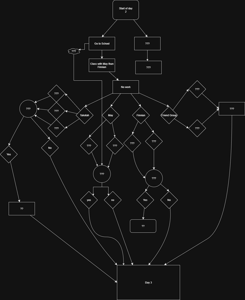 as an apology for the wait and as a thank you for the support we decided to share the overview of day 2 (after some censoring for spoilers) to show what we have thought. This was the diagram we made while we were on a date (sudden inspiration and all that.)